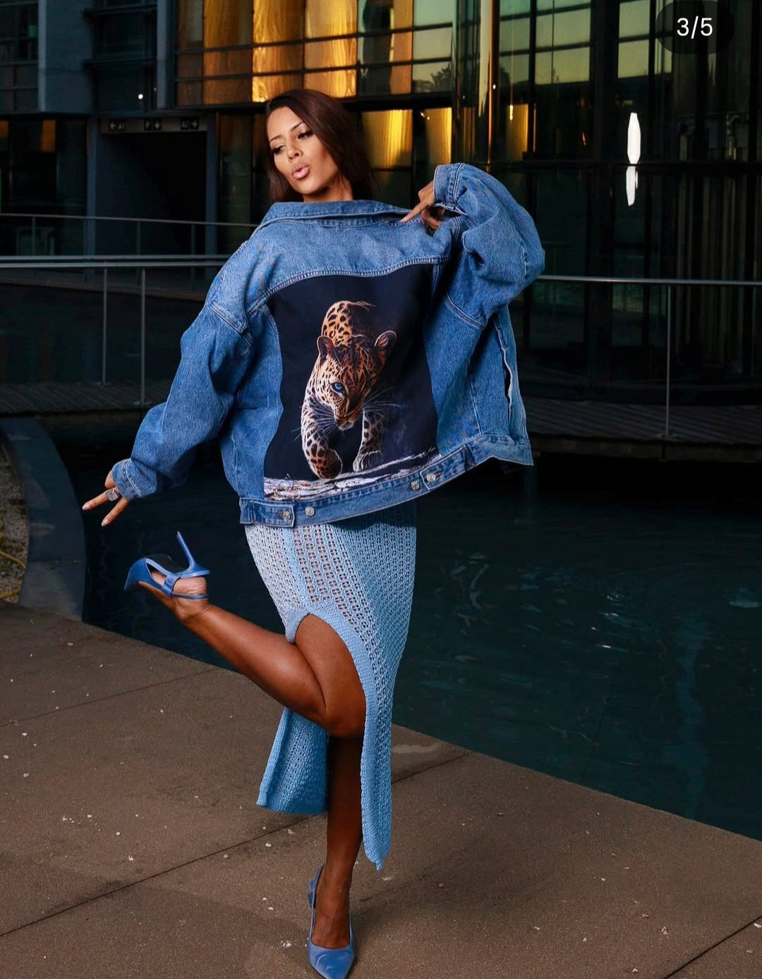 Veste en jean bleu avec poches à l'avant